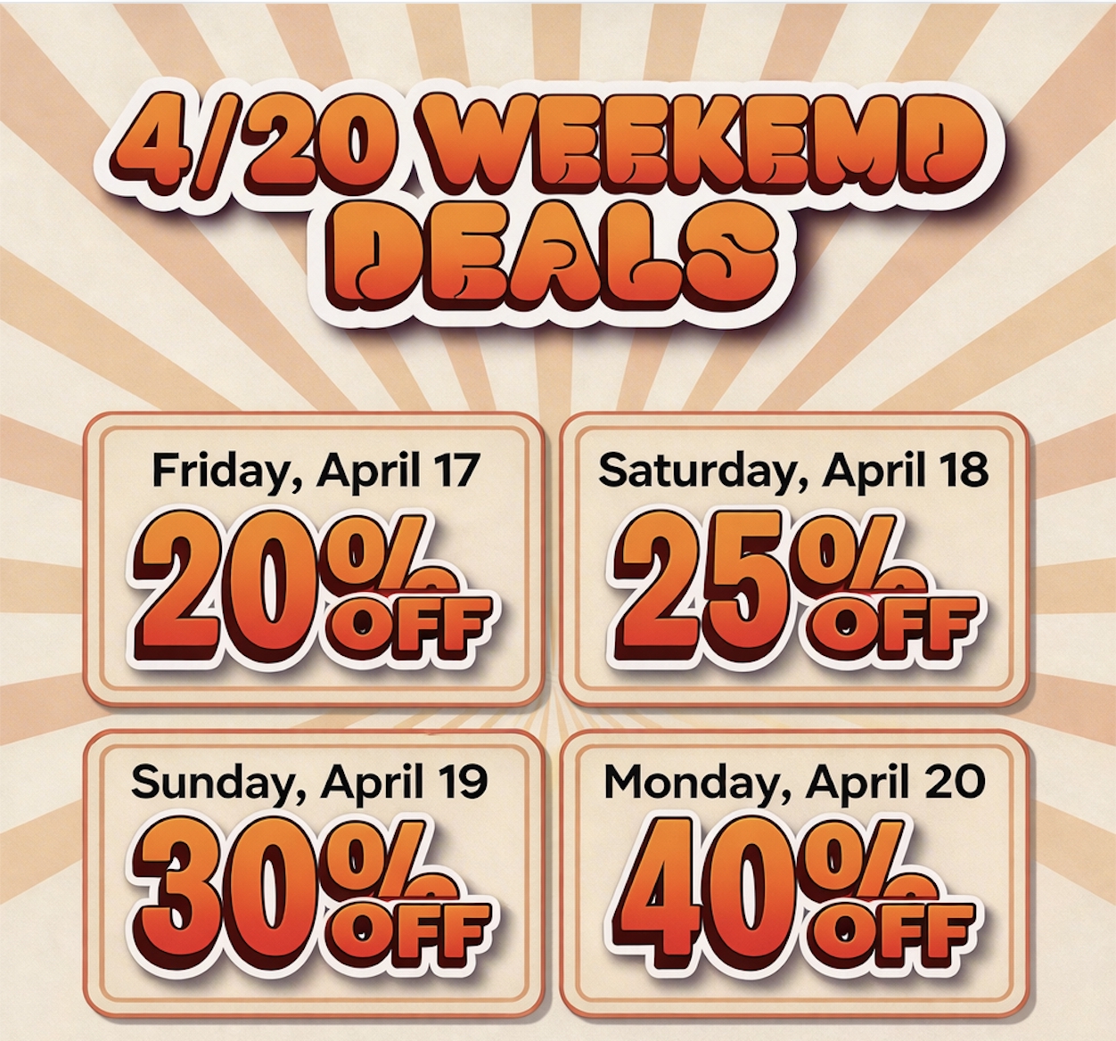 April 17–20 only. Visit Red Oak Dispensary in Absecon, NJ.
